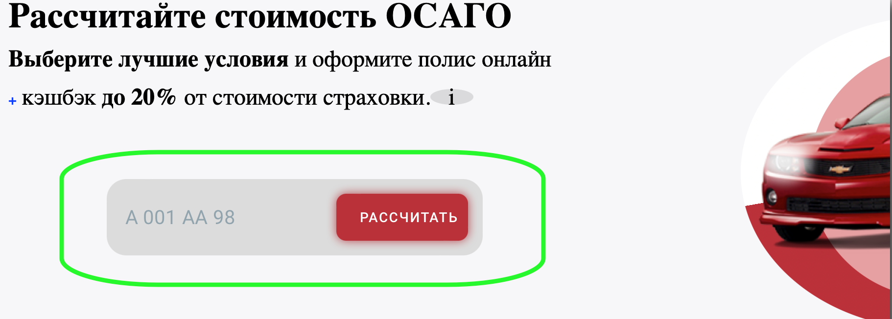 - На странице Осаго-Онлайн введите номер авто и другие данные ТС.